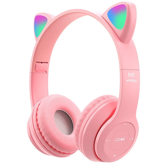 Дитячі бездротові навушники Bluetooth з вушками та LED-підсвіткою, світлодіодні, для дітей