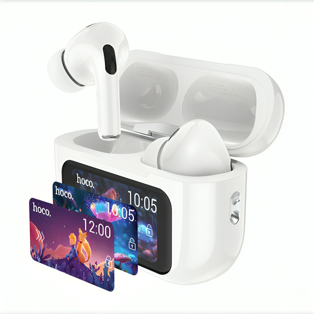 Бездротові сенсорні Bluetooth TWS навушники із зарядним кейсом дисплеєм у кейсі активним шумопоглинанням (478821-Prob) Білі