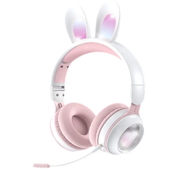 Бездротові Bluetooth навушники з вушками з LED-підсвіткою AKS-28 Рожевий