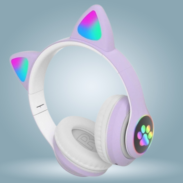 Бездротові Bluetooth навушники Cat STN-28 з котячими вушками LED-підсвітка мікрофон FM-радіо AUX Purple