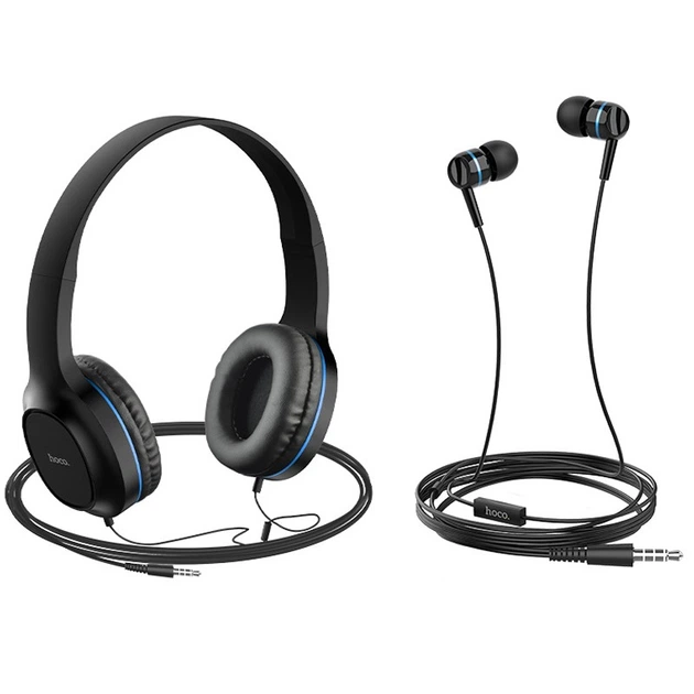 Комплект провідних навушників 2 в 1 накладні з оголов'ям + вакуумні Hoco W24 Чорні із золотим