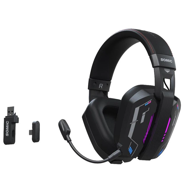 Ігрові навушники Somic MH201 чорні, 7.1 звук, Bluetooth 5.3, 2.4G USB+Type-C, RGB підсвітка, 50 мм драйвери, акумулятор 1200