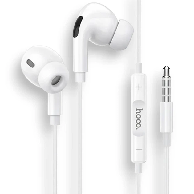 Дротові навушники HOCO M101 Pro з мікрофоном, підключення AUX 3.5мм, чистий звук, білі (LKMTR821257)