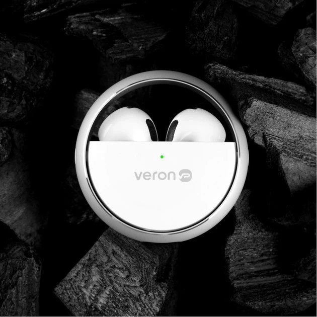TWS Bluetooth навушники Veron M06 Round бездротові для музики та розмов з тривалим часом роботи білі