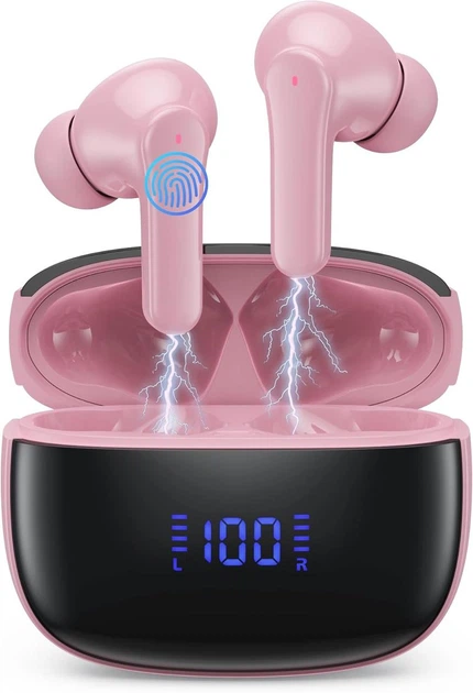 Навушники S05-0769 (Яскраво-Рожеві) Sport, Bluetooth 5.4, 128г, 4-ENC, IP7, LED-дисплей, з завушинами