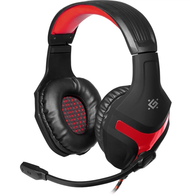 Ігрові повнорозмірні навушники з мікрофоном, провідні, закриті, регулятор гучності, 2.5 м, чорно-червоні