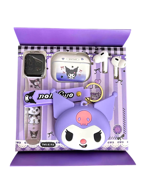Подарунковий комплект бездротові Bluetooth навушники із зарядним кейсом годинником брелоком для дітей дівчаток (481933-Prob)