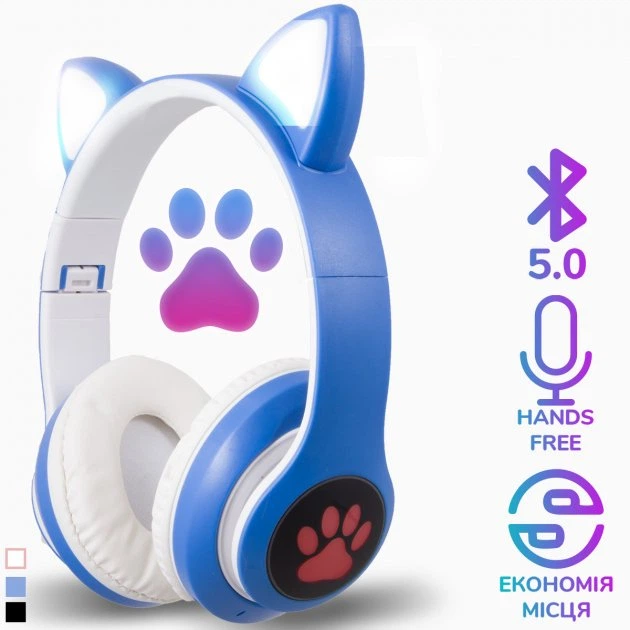 Бездротові навушники з котячими вушками STN-28 з Bluetooth гарнітурою і LED підсвічуванням (Синій)