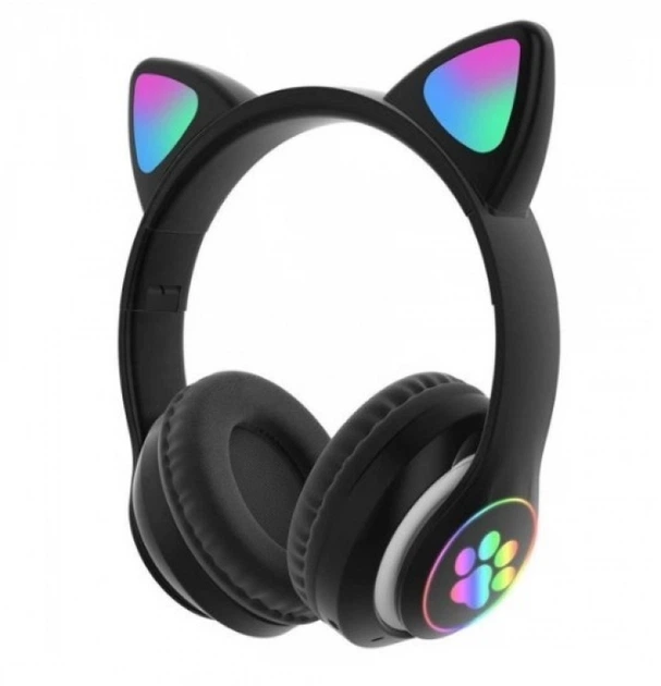 Навушники вушка котика CAT 47 Bluetooth бездротові, повнорозмірні, що світяться Black
