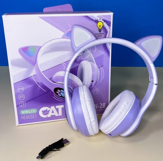Навушники вушка котика CAT 47 Bluetooth бездротові, повнорозмірні Violet, що світяться