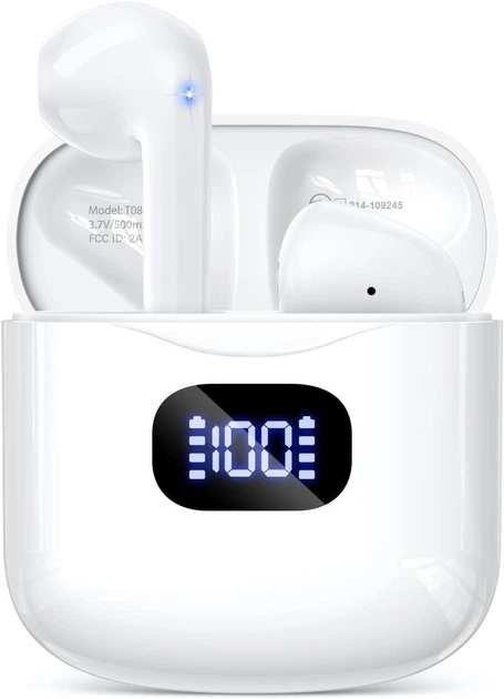 Бездротові навушники Bluetooth 5.3 (TWS) з LED дисплеєм, IPX7, 40г роботи, Білі