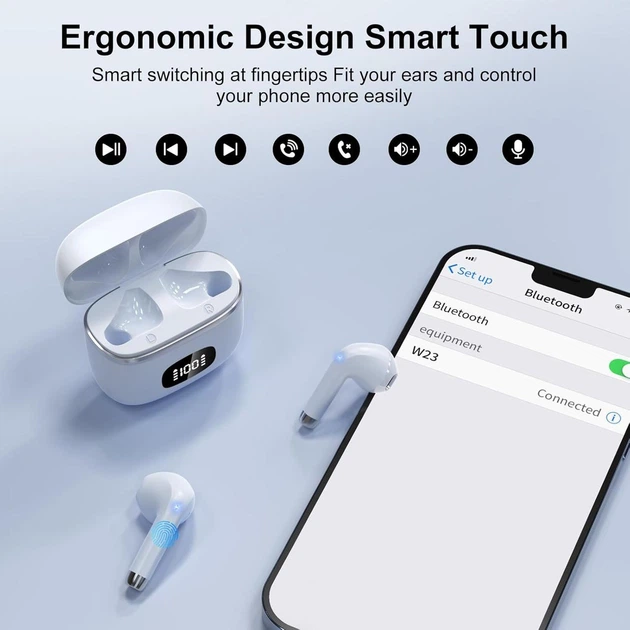 Бездротові навушники Bluetooth 5.3 (білі), ENC, 40г, Hi-Fi, LED-дисплей, IP7, мікрофон, Touch Control