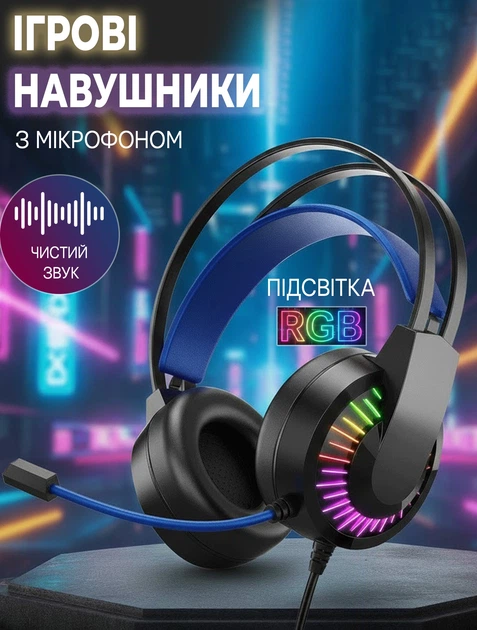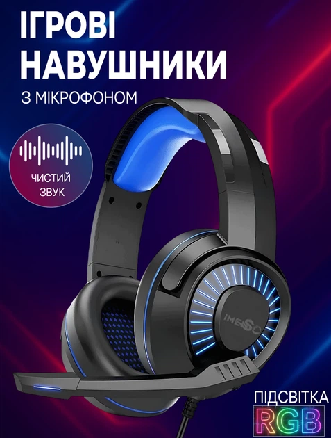 Ігрові навушники провідні IMENSO E1008 з RGB підсвічуванням USB 3.5 Black-blue