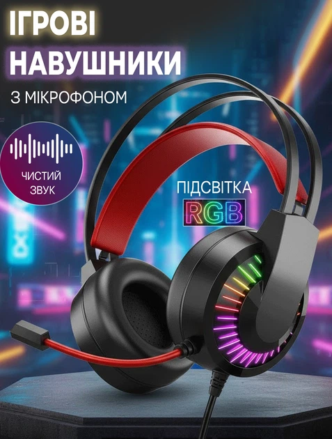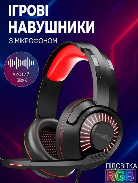 Ігрові навушники провідні IMENSO E1008 з RGB підсвічуванням USB 3.5 Black-red
