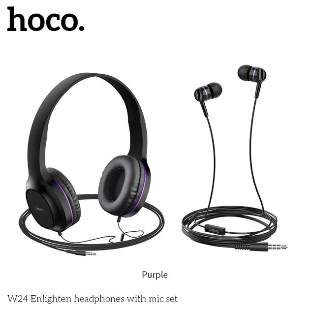 Пара навушників Накладні і вставні HOCO Enlighten W24 чорно-фіолетові