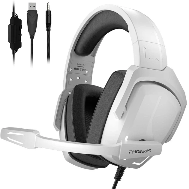 Геймерські навушники PHOINIKAS H-6 з підтримкою об'ємного звуку 7.1 Білий (DB-2375)