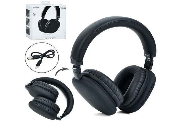 Навушники TM-087, Bluetooth, дальність дії до 10 м, 20 Гц – 20 000 Гц, пластик, м’які амбушюри, чорні