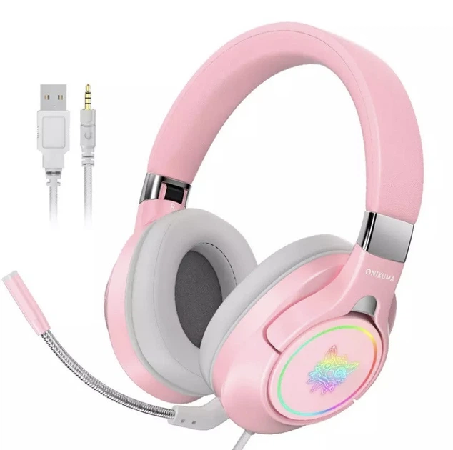 Навушники комп'ютерні з мікрофоном і LED RGB-підсвіткою геймерські ONIKUMA K15 Рожеві