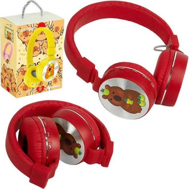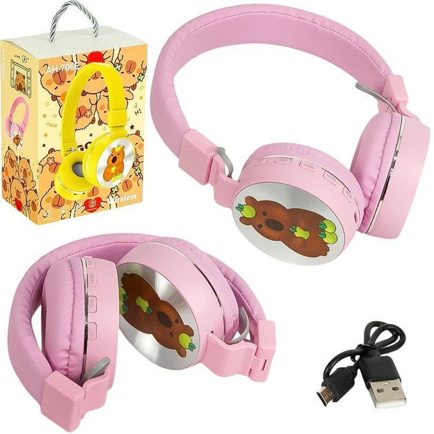 Навушники "Капібара" з LED-підсвічуванням бездротові накладні великі блютуз з мікрофоном FM/TF для музики, ПК та дзвінків, с