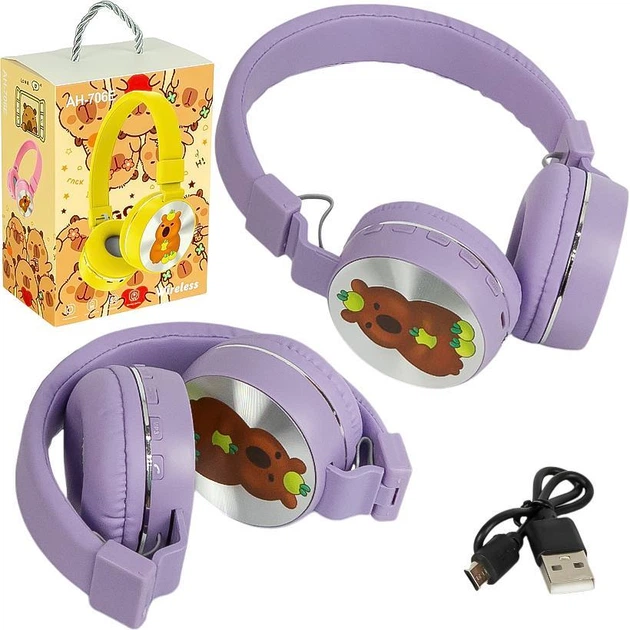 Навушники "Капібара" з LED-підсвічуванням бездротові накладні великі блютуз з мікрофоном FM/TF для музики, ПК та дзвінків, ф
