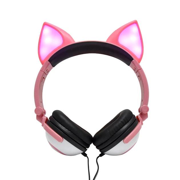 Навушники SUNROZ Linx Bear Ear Headphone з вушками Лисички LED 1,5 м Рожевий (SUN2651)