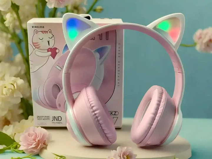 Наушники накладні Bluetooth Кошеня з вушками AKZ-07 накладні вологозахист IPX4 RGB підсвітка