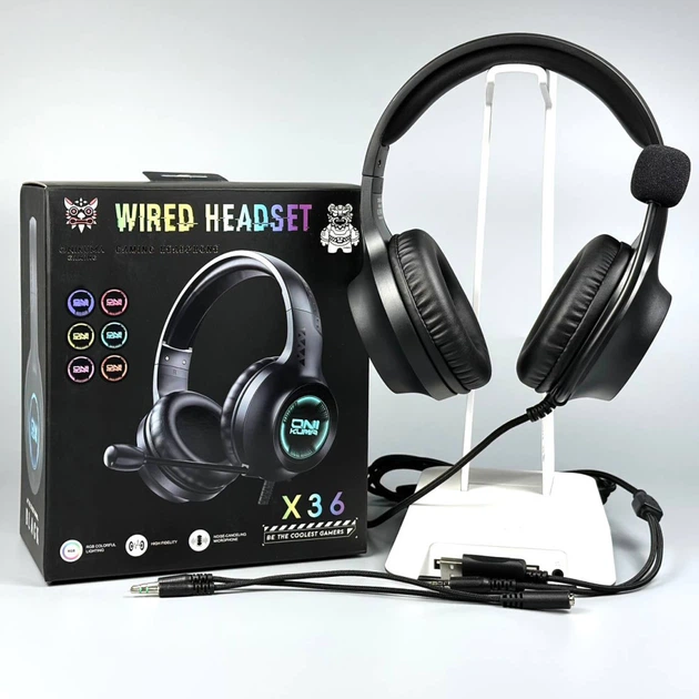 Навушники ігрові провідні ONIKUMA X36 з мікрофоном і RGB-підсвіткою Чорний 58365