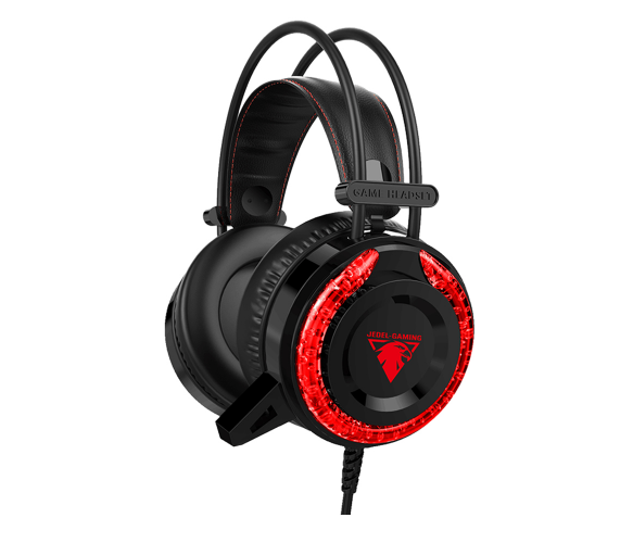 Навушники провідні з підсвічуванням Jedel GH-269, з мікрофоном та регулюванням гучності, Black - Red, Box