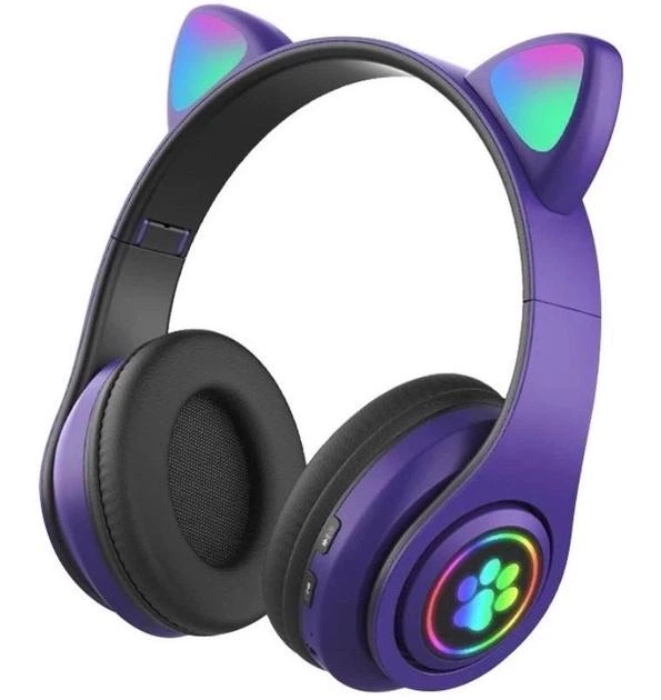 Навушники Bluetooth CAT EAR RGB бездротові з підсвічуванням котячі вушка Фіолетові