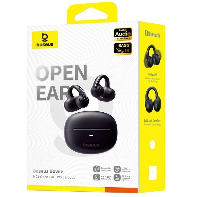 Бездротові спортивні навушники Baseus Bowie MC1 з відкритим дизайном і захистом IP57 Чорні (A00083501126-00)