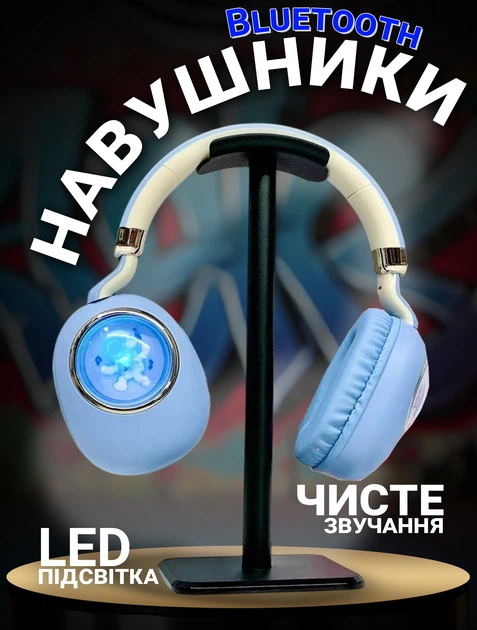 Накладні навушники дитячі бездротові з RGB підсвічуванням CatEar 892 Bluetooth Blue
