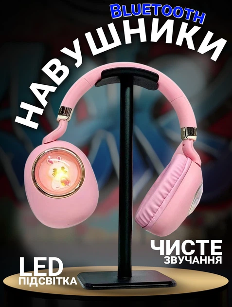 Накладні навушники дитячі бездротові з RGB підсвічуванням CatEar 892 Bluetooth Pink