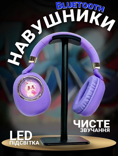 Накладні навушники дитячі бездротові з RGB підсвічуванням CatEar 892 Bluetooth Violet