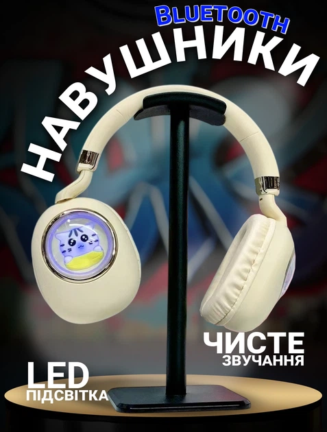 Накладні навушники дитячі бездротові з RGB підсвічуванням CatEar 892 Bluetooth Beige