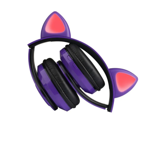 Бездротові Bluetooth навушники з котячими вушками та лід підсвічуванням Y47 Cat Ear Фіолетові