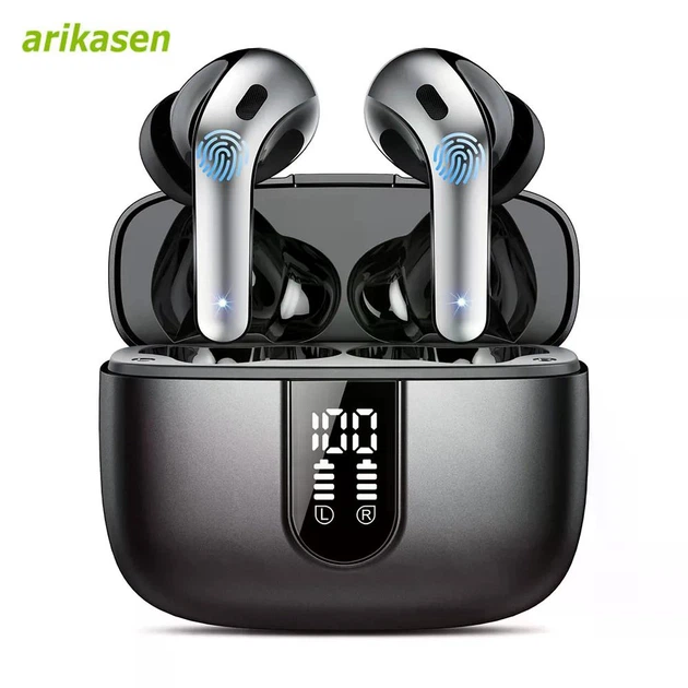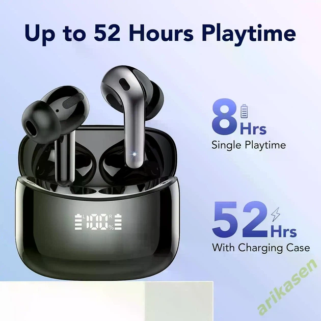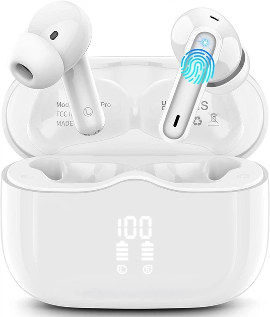 Навушники Bluetooth 5.3, TWS, IP7, 36 год роботи, LED-дисплей, Hi-Fi стерео, білі