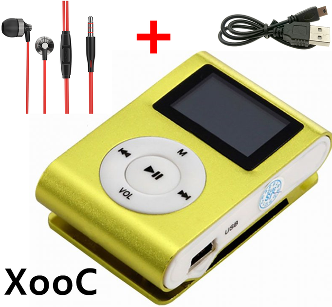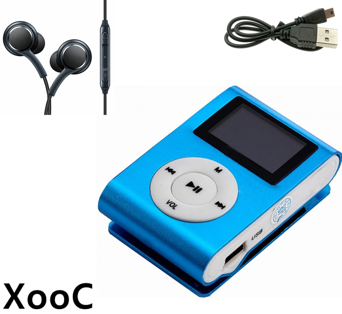 Міні MP3 плеєр алюмінієвий кліпса + вакуумні навушники + USB перехідник. Мп3 плеєр для спорту, бігу WJ3S