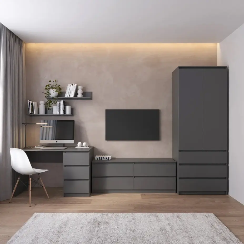 Комплект меблів у вітальню VAYS шафа R-9, тумба R-6, стіл R-1, полиці М-22, антрацит