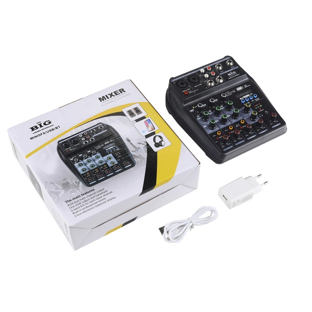 Микшер 2mono+2stereo Частотный диапазон: 20Hz-20KHz S/N rate: ? 105 dB Эквалайзеры: 3-х полосый эквалайзер на каждом канале Фантомное питание +48V