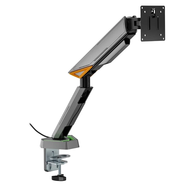 Розміри (мм): 446х510х114; RGB підсвічування; 100x100 мм; Кріплення VESA: 75x75 мм; регулювання висоти; обертання; відхилення; регулювання глибини; поворот; нахил; Регулювання: для вигнутих TV; Макс. навантаження (кг): 12; Макс. діагональ ("): 40; Мін. діагональ ("): 17; Тип: настільне кріплення