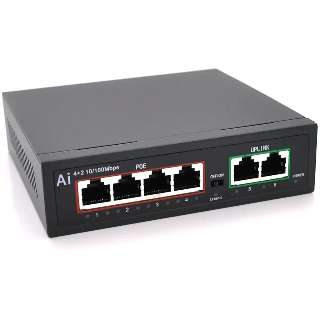 POE комутатор Merlion 4 POE 10/100 + 2 RJ45 10/100 вбудований блок живлення 52V 1.05A