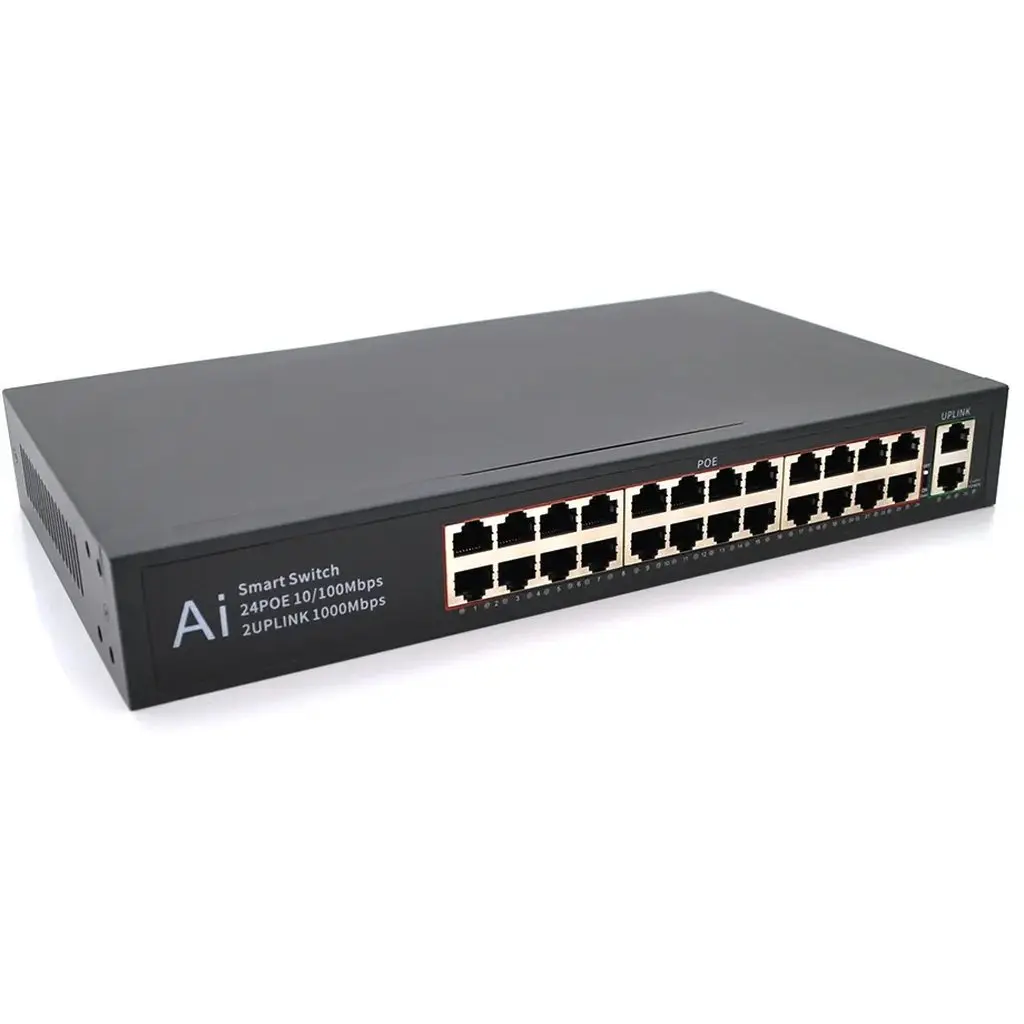 POE комутатор Merlion 24 POE 10/100 + 2 RJ45 10/100/1000+ вбудований блок живлення 52V 5.8A Y-26491