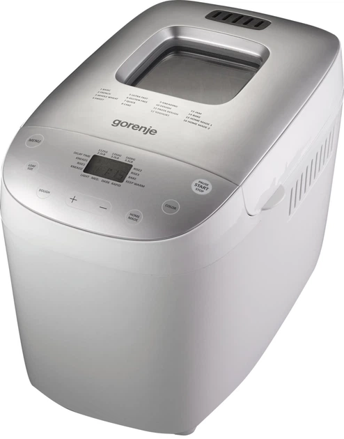 Хлібопічка Gorenje потужністю 850 Вт, з однією програмою, максимальною вагою 1.6 кг, прямокутної форми, виготовлена з пласти