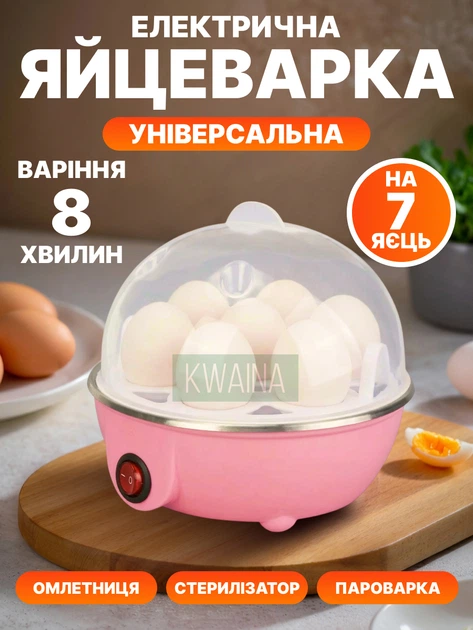 Яйцеварка електрична на 7 яєць з автоматичним відключенням, пароварка для яєць з таймером, електрична яєчна плита, рожева