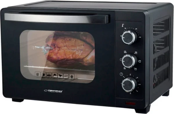Терморегулятор/Так, до 230 °С|Гарантійний термін/1 рік|Конвекція/Так|Вага/7 кг|Комплектація/Деко, Піддон, Ручка для деко, Решітка, Рожен, Піч електрична, Інструкція, Гарантійний талон|Особливості/Звуковий сигнал, Таймер, Автовідключення, Підсвічування|Габарити (ВхШхГ)/48,6 × 37,6 × 31,6 см|Кількість режимів приготування/5 шт.|Режими/Рожен, Гриль, Конвекція, Нижній нагрів, Верхній нагрів|Колір виробника/Чорний|Об'єм камери/25 л|Бренд/Esperanza|Гриль/Так|Споживана потужність, Вт/1600 Вт|Вага в упаковці, кг/7,3 кг|Таймер/Так, до 1 години|Країна виробництва/Китай|Габарити упаковки (ВхШхГ)/51,0 x 39,0 x 36,0 см|Рожен/Так