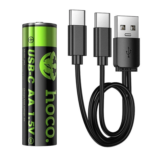 Акумуляторні літієві батареї Hoco JA3 AA (1.5V, 3200mWh) з зарядкою Type-C (2 шт)