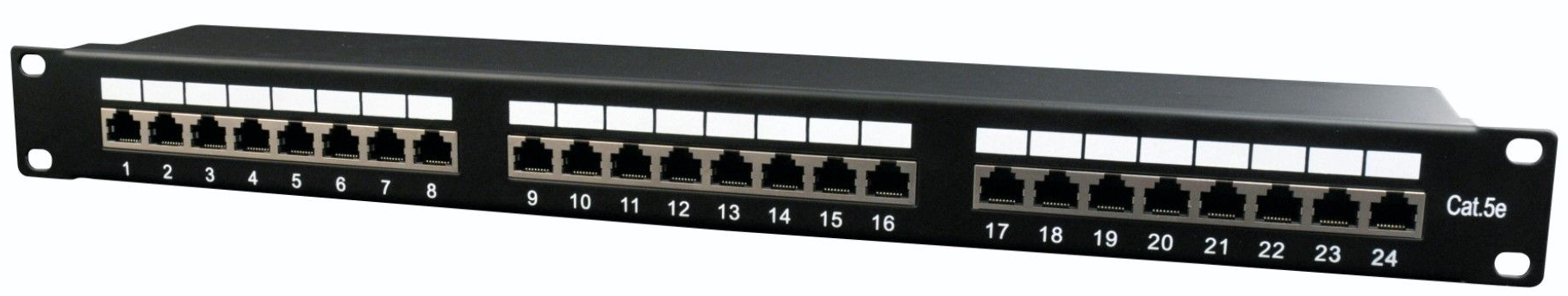 Патч-панель Cat.5E UTP встановлюється в серверну шафу або стійку і використовується для підключення витої пари з боку точки комутації з активним мережевим обладнанням. Установча висота 1U в направляючі 19 дюймів на чотири точки кріплення. Основа панелі виготовлена зі сталі з пластиковими вставками під коннектори RJ-45. ]]>