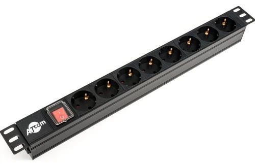 Модуль розподілу живлення 1U, 19', Atcom, чорний, 8 розеток (PDU-8W-CN-WS)