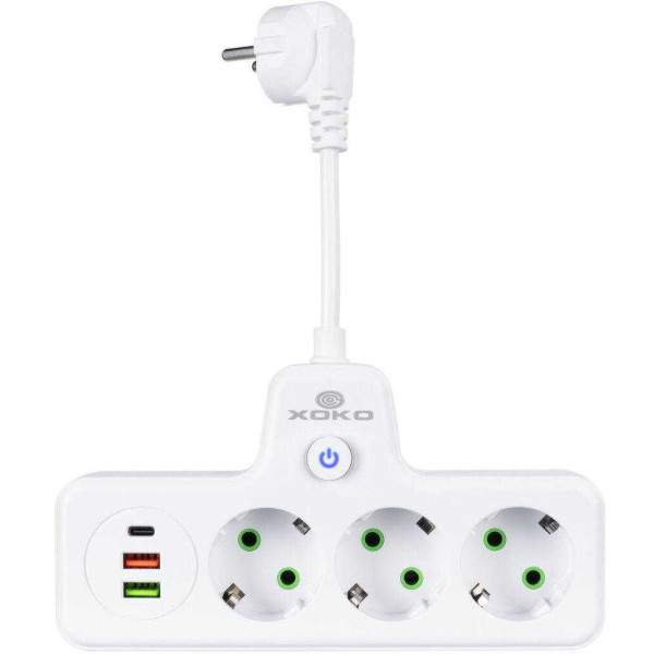 Колір виробника/Білий|Особливості/USB-A, USB-C|Бренд/XOKO|Довжина кабелю/10 см|Кількість Euro-розеток/3|Вхідний роз'єм/Стандартна вилка (CEE 7/4 Schuko)|Гарантійний термін/6 місяців|Призначення/Для будинку, Для дачі, Для квартири, Для офісу|Заземлення/Так|Максимальне навантаження/2500 Вт|Кількість розеток/3|Країна виробництва/Китай|Тип/Мережевий фільтр