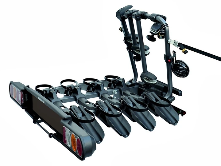 Довжина поперечин: ; Вага (кг): 16.5; Матеріал корпуса: сталь; Спосіб кріплення велосипеда: колесо/рама; Кількість велосипедів (шт.): 4; Вантажопідйомність (кг): 60; Встановлення: на фаркоп; Тип: кріплення для велосипеда